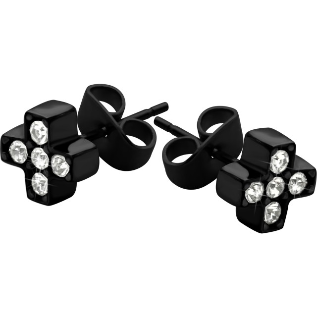 316L Black Stud Earrings with Cross Shaped Crystals