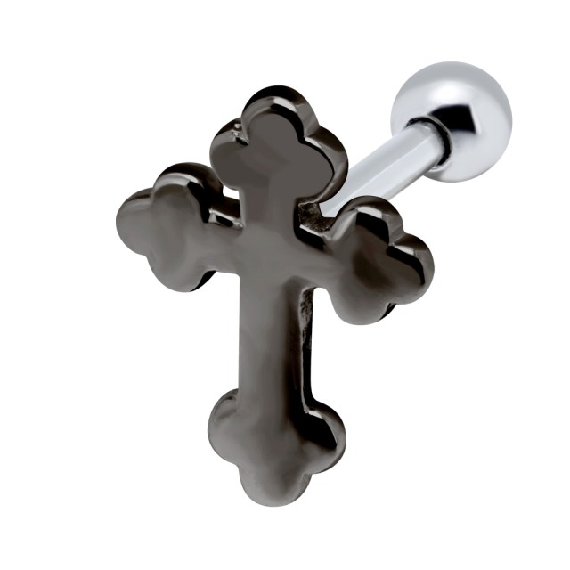 316L helix ear piercing 1.2x6mm, graveyard cross motif out of 925 sterling silver