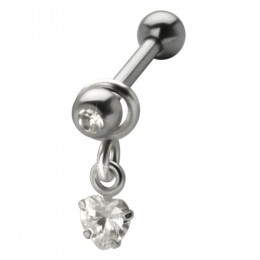 316L steel helix ear piercing 1.2x6mm, HEART pendant crystal