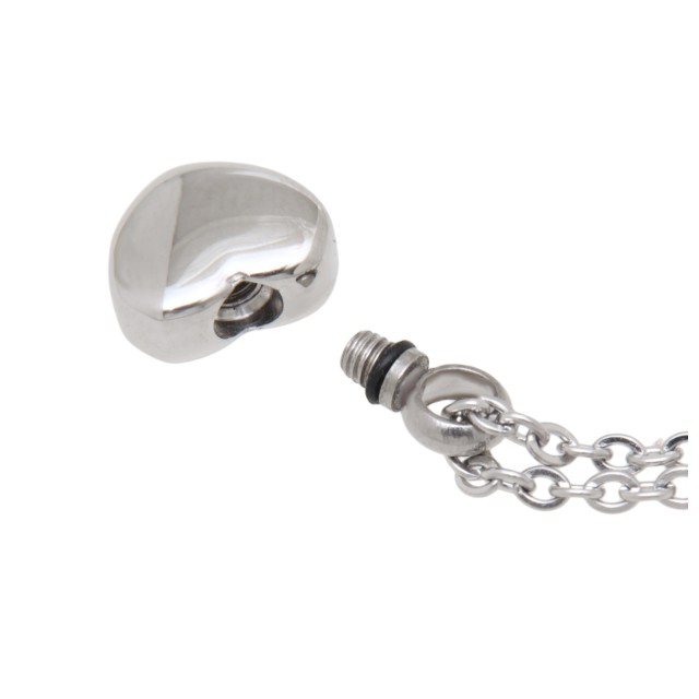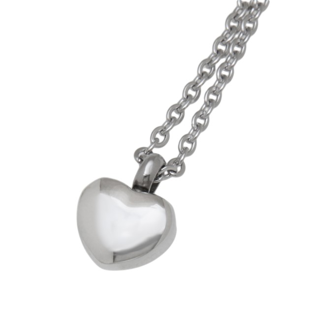 Ash pendant heart made of high-gloss polished stainless steel. Height including eyelet approx. 16mm, width approx. 12mm, the item is 5.5mm thick. The pendant comes with a 55cm steel chain and is presented in a gift box. Including funnel and stainless steel needle for filling.