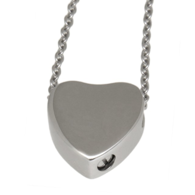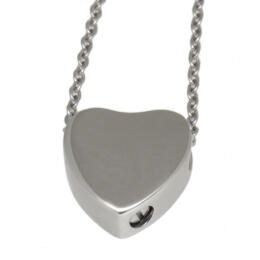 Ash pendant heart made of high-gloss polished stainless steel. Height approx. 20.7mm, width 19.6mm, the item is 7.9mm thick. The pendant comes with a 55cm steel chain and is presented in a gift box. Including funnel and stainless steel needle for filling.