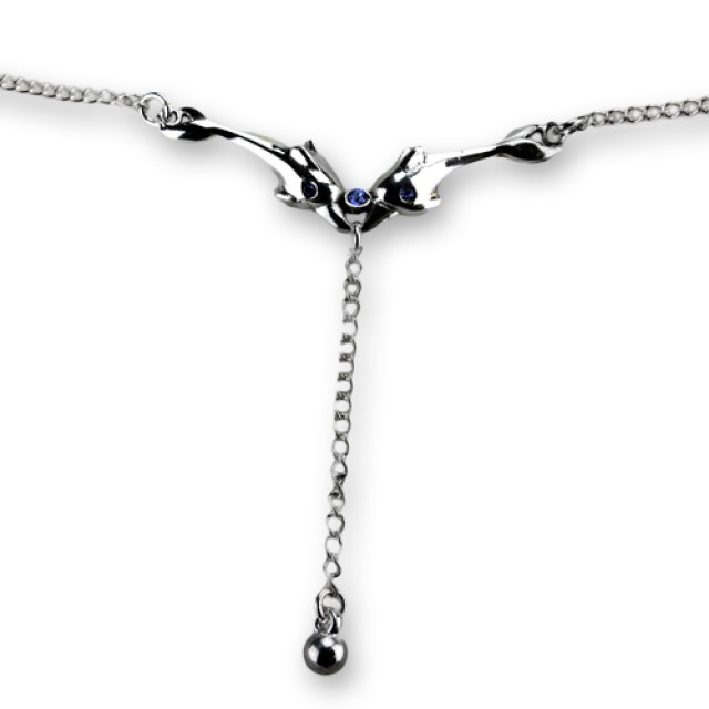 Back Belly Chain made of 925 sterling silver. The motif - dolphins - is worn on the tailbone of these necklaces. The chain is available in a length of 100 cm and closes with a clip. Crystal color selectable