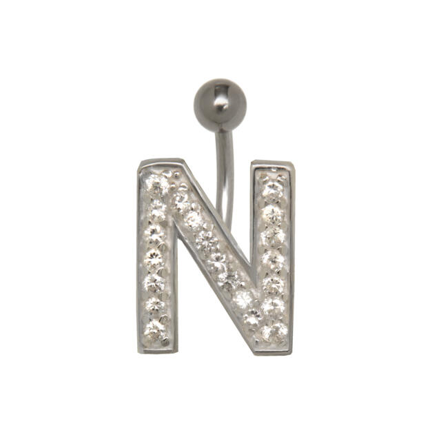 Belly button body jewelry piercing in ABC design with zirconia - letter N,1.6x6mm / 1.6x8mm / 1.6x10mm / 1.6x12mm / 1.6x14mm