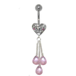 Belly button piercing with motif made of 925 sterling silver and three pendant briolette crystals