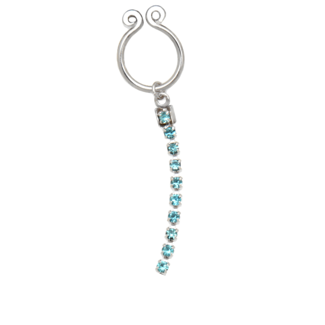 Nipple clip made of 925 sterling silver with a cup chain, piercing holds without a hole and is individually adjustable in size by expanding or compressing the opening. Available in multiple crystal colors, please select your favorite color.