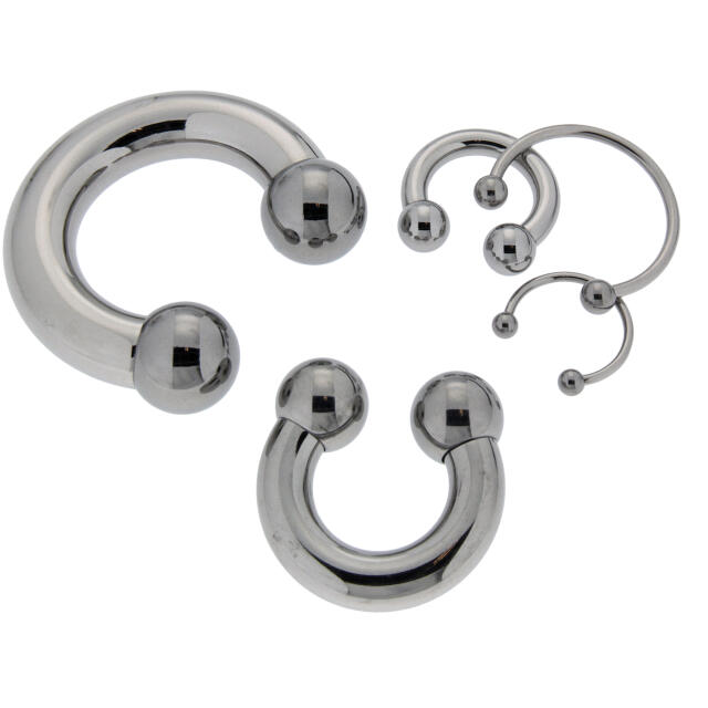 Standard horseshoe piercing made of 316L surgical steel, 8.0mm thick. Both balls can be unscrewed. Available in several diameter sizes