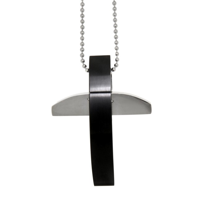 Cross pendant with PVD coating - Material: stainless steel, partly with black PVD coating - Surface: shiny front, partly polished and matted back - Size: 44.9mm x 34.6mm - The pendant will be delivered WITHOUT the ball chain shown. This would have to be ordered separately. - Jewelry bag can be ordered under the item number IC-Bag With an individual engraving, the pendant becomes a unique gift for confirmation, communion or confirmation.