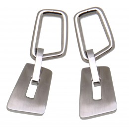 Earrings made of stainless steel in an eye-catching retro design, 40mm long, almost 15mm wide. The upper element is polished to a high gloss, as is the connecting part. The lower part is elegantly matted.