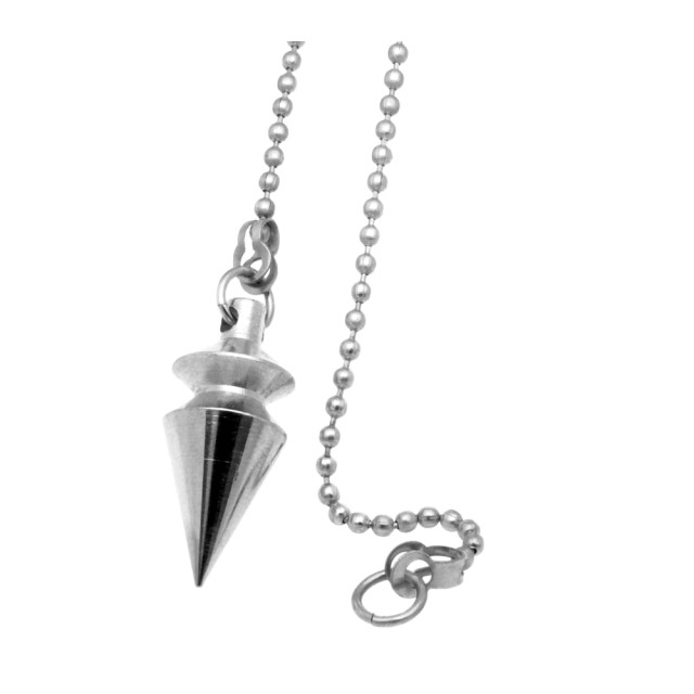 Esoteric cone pendulum chrome-plated - material: chrome-plated brass - pendulum dimensions: 29x13mm - chain length: 14.3cm - weight: 11.78g. - Jewelery bag can be ordered under the article number IC-Bag We have a large selection of pendulums in our range. We enclose instructions for use for the pendulum.