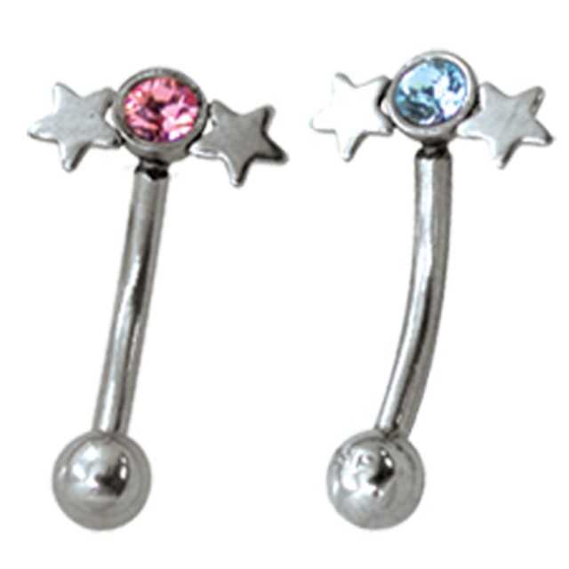 Special offer! Delivery only while stocks last! Curved eyebrow piercing made of 316L Surgical Steel with a small crystal and two stars as a design