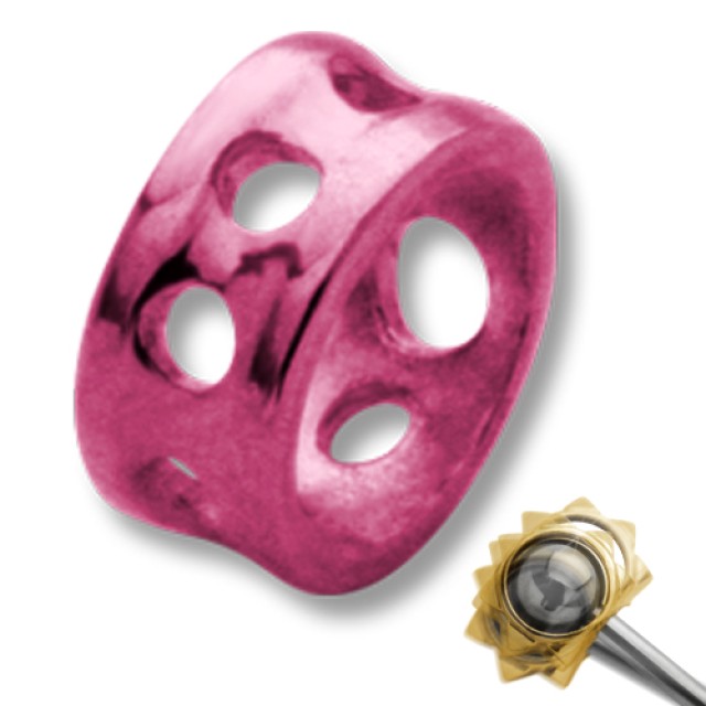 Frame for your piercing made of 316L surgical steel. The frame is screwed onto your piercing with the ball and can then be moved freely. It has small holes all around. Available in three sizes and six colors.