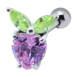 TIP ear studs APPLE with 1.2x6mm helix ear piercing made of surgical steel, motif set in 925 sterling silver, the APPLE is a juicy, delicate pink zirconium. Almost 9mm high and 8mm wide. On the small picture you can see how and where to wear something - the TIP shown here is not part of this offer. We ship the item in jewelry packaging.