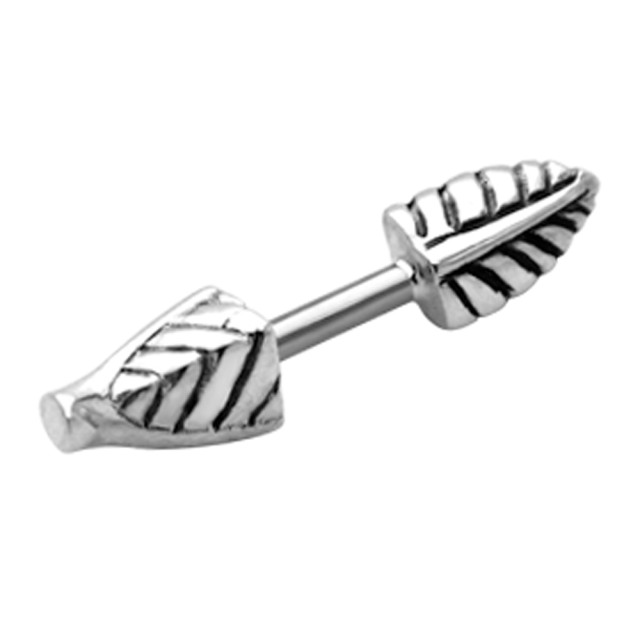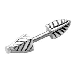 Helix ear piercing made of 1.2x6mm 316L surgical steel with a feather design made of 925 sterling silver. One end can be opened to open. The piercing can be worn on the right or left ear.