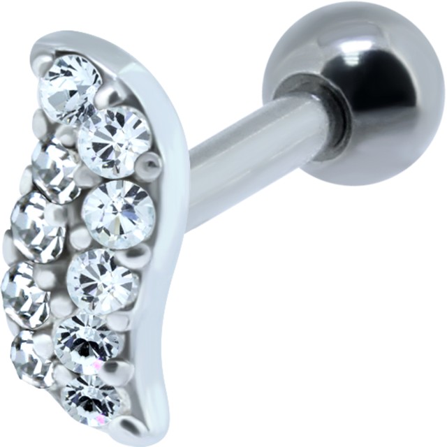 Ear piercing for the helix (auricle) made of 1.2x6mm 316L surgical steel Helix ear piercing with a motive made of sterling silver and lots of small clear crystals, length of the motive 8mm. Shipping in jewelry packaging.