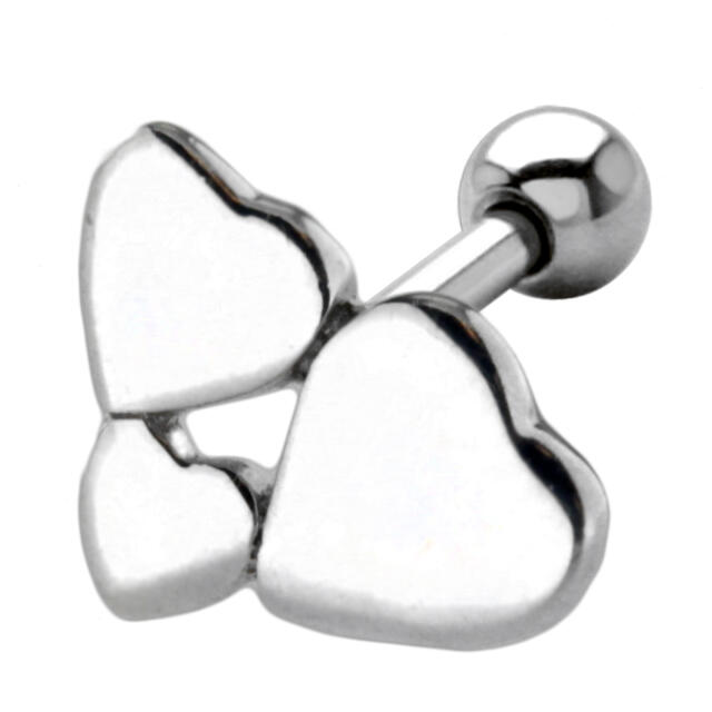 Helix ear piercing made of 1.2x6mm 316L Surgical Steel with a heart design made of 925 Sterling Silver. The piercing can be worn on the right or left ear.