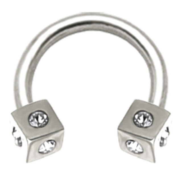 Horseshoe piercing made of 316L surgical steel with a thickness of 1.0mm to 1.6mm, jeweled cubes are screwed on at both ends
