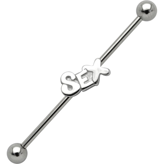 Industrial ear piercing made of surgical steel with SEX lettering