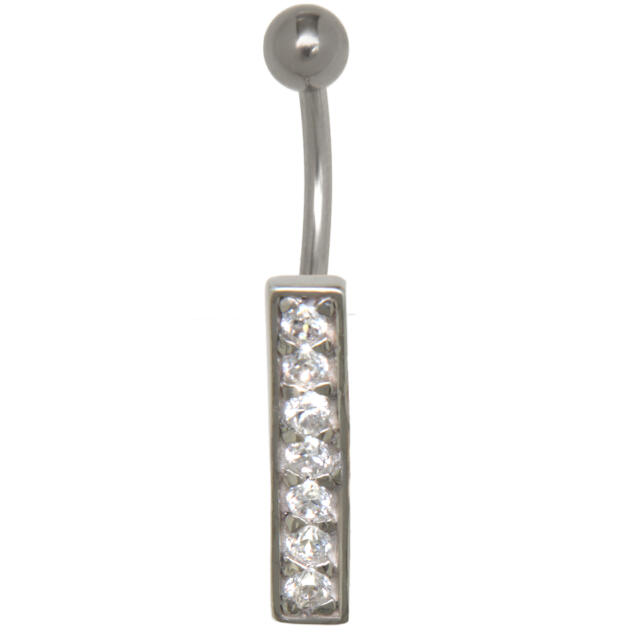 Letter navel piercing I with steel or titanium banana - Material banana: 316L surgical steel or titanium - Length banana: 1.6x6mm / 1.6x8mm / 1.6x10mm / 1.6x12mm / 1.6x14mm - Material design: 925 sterling silver - Design dimensions: 5x18mm - The design is the letter I set with many clear crystals - When in Unless otherwise stated by you in the order remarks, the piercing will be delivered with a steel banana in the desired length - jewelry bag can be ordered under the item number IC-Bag An unusual eye-catcher not only for the evening.