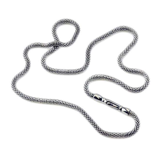 Necklace in stainless steel type Milanese in two lengths. The chain is 2mm wide and weighs about 5 grams. The necklace closes with a stainless steel buckle with a diameter of 3.5mm.