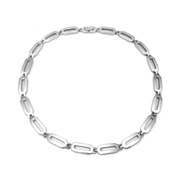 Necklace made of stainless steel, 45 cm long, 16 chain links are highly polished, clasp with stainless steel embossing, weight 65 grams, delivered in a gift box.