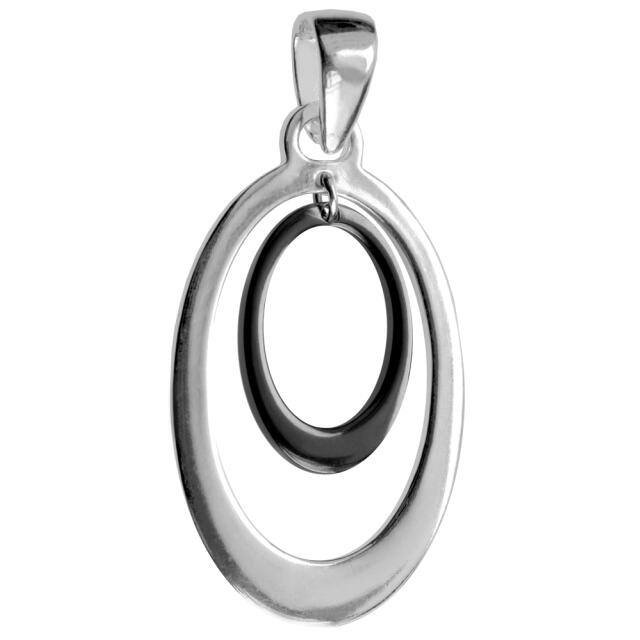 Necklace pendant oval made of 925 silver with partial gray PVD coating - Material: 925 sterling silver - Coating: small oval gray PVD coated - Dimensions: 27x18mm without eyelet - In the outer oval hangs a smaller oval which can be moved freely - The pendant comes WITHOUT a chain delivered. This must be ordered separately. - Supplied in a gift box - Weight approx. 3.66 grams. The pendant is timelessly beautiful and can be worn on all occasions.