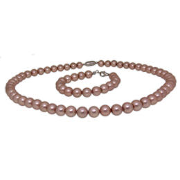 Necklace with bracelet consisting of patent pearls in antique rose