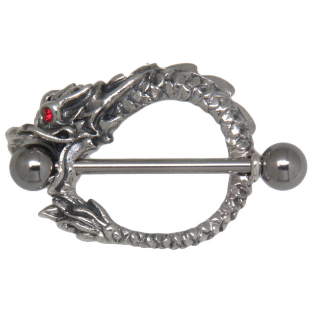 Nipple piercing made of 925 sterling silver dragon swallows world