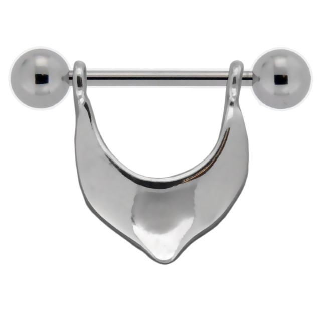Nipple shield made of 925 sterling silver with an unusual design. The sign has an inner diameter of 12.0mm. The barbell dumbbell is put through two eyelets on the side. The delivery is WITHOUT a barbell. This must be ordered separately.
