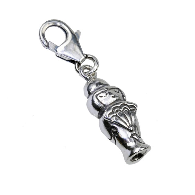Lovingly designed, detailed pendant: Kokeshi doll made of 925 sterling silver. The pendant comes with a silver snap hook to hang it on a chain or charm bracelet. Length of the pendant almost 20mm. Weight approx. 3.9 grams.