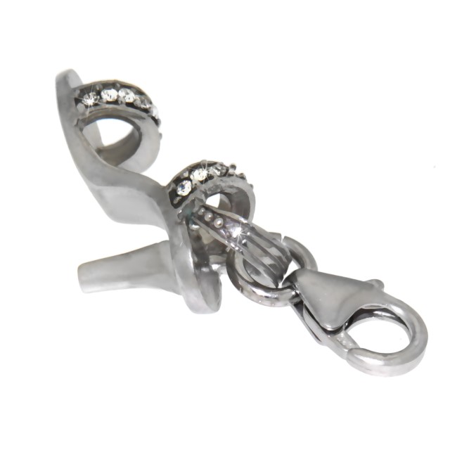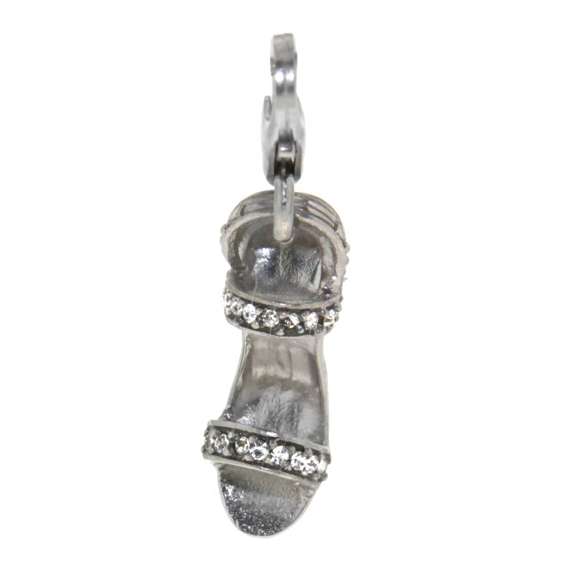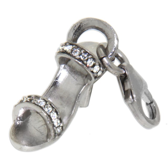 Pendant high heels made of 925 sterling silver with black anodized straps. The pendant is equipped with a mini carabiner, also made of silver, for hanging on a charm bracelet. From International Connection.