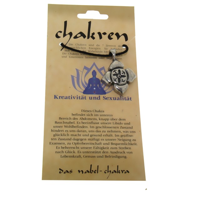 Pewter Navel Chakra Pendant, meaning creativity and sexuality, comes with a black cord and a card explaining the meaning of each symbol