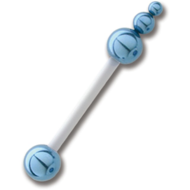 Barbell made of skin-friendly bioplast with two titanium screw designs. The barbell dumbbell is 26mm long and can be cut to the desired length with scissors. The screw-on designs are available in seven colors.