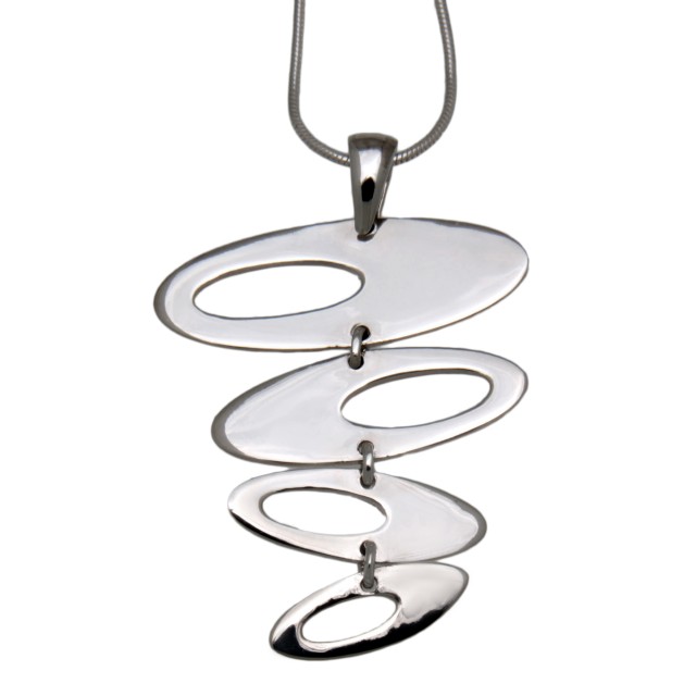 Necklace pendant with 4 ovals hanging one below the other made of 925 silver - Material: made entirely of 925 sterling silver - Dimensions: 35x29mm without eyelet - Weight: approx. 4.97g. - largest oval is 11x29mm, smallest oval is 6x15mm - all ovals are connected by eyelets and can be moved freely - the pendant comes WITHOUT a chain. This must be ordered separately. - Delivered in a jewelry box. The pendant is timelessly beautiful and can be worn on any occasion.