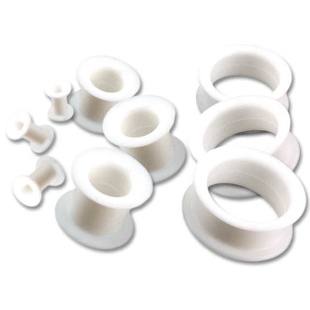 Silicone tunnels in 6 different colors from 4mm to 26mm in diameter - tunnel material: colored silicone - tunnel thickness: 4mm, 5mm, 6mm, 8mm 10mm, 12mm, 14mm, 16mm, 18mm, 20mm, 22mm, 24mm, 26mm - tunnel length: Length is approx. 12.3mm - Colors: white, black, skin, blue, red and pink - The tunnel is soft, flexible and skin-friendly - A jewelry bag can be ordered under the item number IC-Bag This piercing is a real eye-catcher on your ears