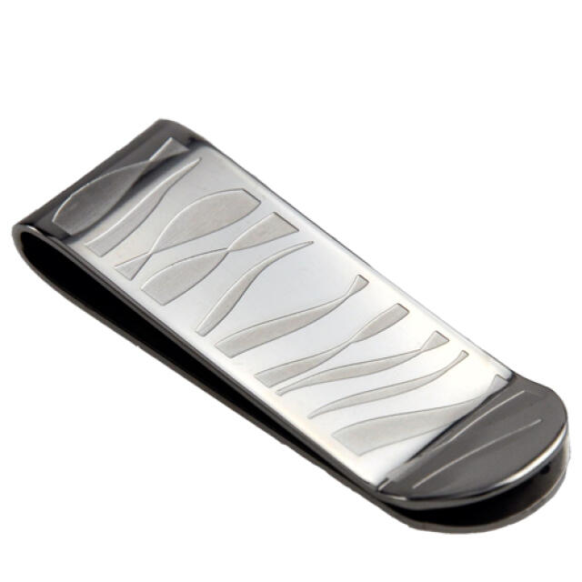Stainless steel money clip with a textured pattern on the front. Dimensions 17x50mm, height 6mm.e. Dimensions 17x50mm, height 6mm. This article is suitable for attaching an engraving on the back, you can also find it under the category JEWELERY ENGRAVING.