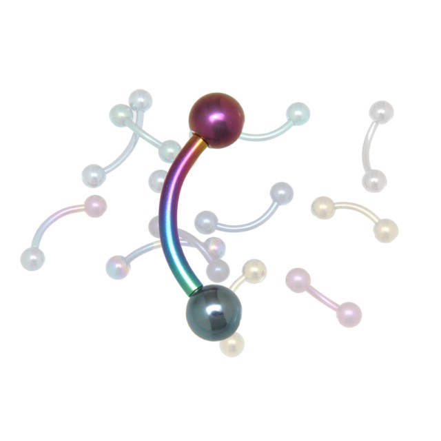 Standard titanium banana 1.6mm thickness without stone in different lengths - material: titanium - thickness banana: 1.6mm - length banana: 6mm, 8mm, 10mm, 12mm and 14mm - colors: the banana is available in 8 different colors - one at the top and one at the bottom 5mm ball without stone - A gift bag can be ordered under the item number IC-Bag. The piercing is versatile.