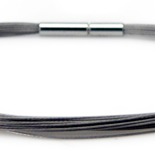 Steel necklace made of 304L stainless steel wire, which is coated with colored nylon. The steel chain is available in three lengths, consists of 25 strands, each with a thickness of 0.38 mm. The chain is closed with a twist and plug closure. The necklace is available in several colors.