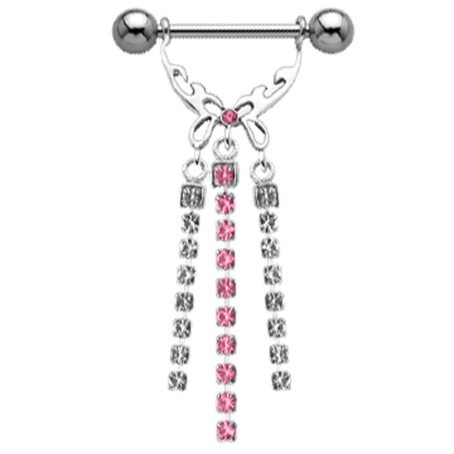 Nipple piercing made of 925 sterling silver with a small crystal and cup chains of different lengths, delivery WITHOUT barbell