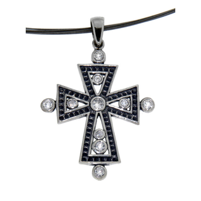 Sterling silver pendant with a coptic cross design, oxidized