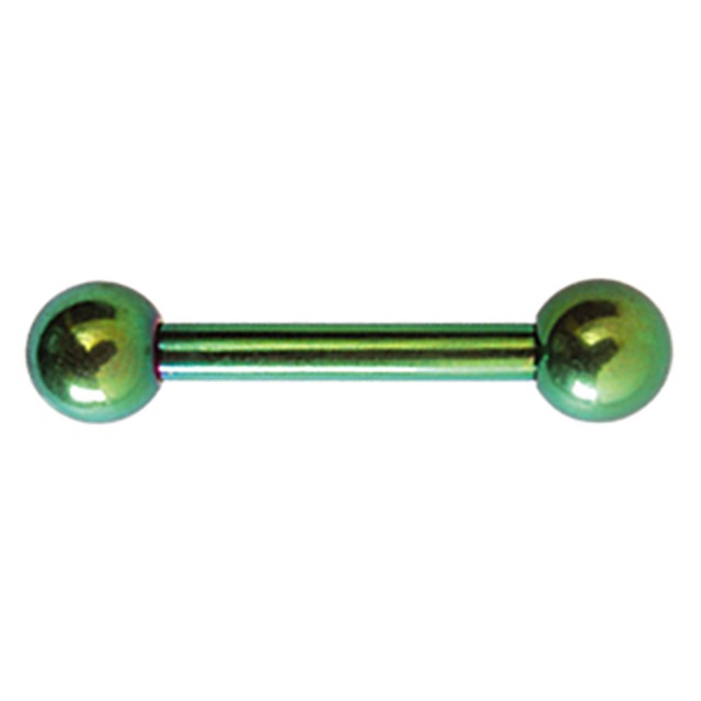 Barbell made of titanium with a thickness of 2.5mm. The barbell has two 6mm screw-on balls, both of which can be unscrewed. The barbell dumbbell is 16mm long and available in seven colors