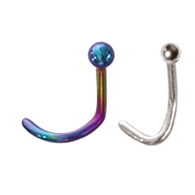 Curved nose studs made of titanium, 0.8mm thick. The nose stud has a small ball design on one side. The nose stud is available in seven colors