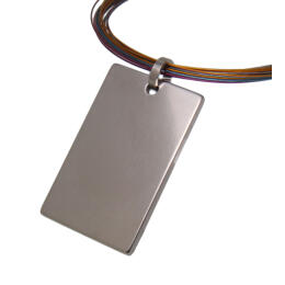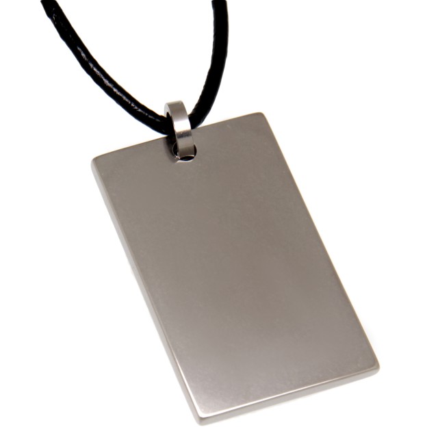 Titanium pendant, rectangular, length 39mm, width 25mm, almost 3mm thick. Weight of the pendant is 11.5 grams. The scope of delivery includes either a 46 cm long necklace made of stainless steel wire, coated with nylon, 25 strands, thread size 0.38 mm, multicolored, rotary clasp made of 304 stainless steel, the clasp is 3.2 mm thick or a necklace made of Leather with stainless steel lobster clasp. Please let us know which collar is suitable for you. We send the set in a decorative packaging. This item is suitable for engraving, you can find it under the item number LAS-TPDDT-R - in our shop you have the option of designing your own engraving using design software.