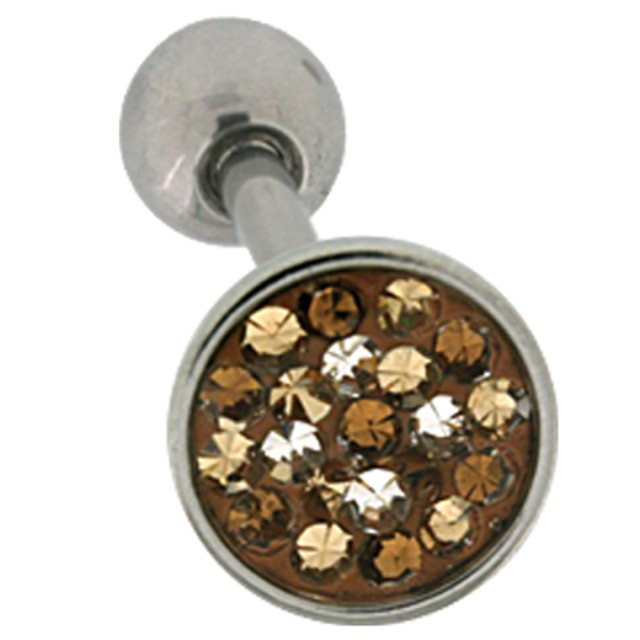 Tongue piercing made of surgical steel, 1.6mm thick with crystal stones in different shades of brown