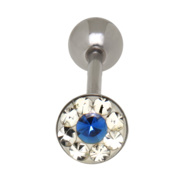 Tongue piercing out of surgical steel barbell with crystals 1.6x16mm