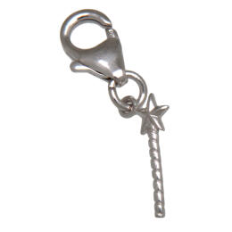 Wand pendant made of 925 sterling silver, rhodium-plated. The pendant (15mm) is equipped with a mini carabiner (14mm), also made of silver, for hanging in a charm bracelet. Total weight approx. 0.8 grams. By International Connection.